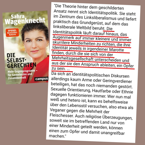 FAZde Gefunden in lesestoffeu. Sahra Wagenknecht zeichnet in ihrem Buch eine Alternative zu einem Linksliberalismus der sich progressiv wähnt aber die Gesellschaft weiter spaltet weil er sich nur für das eigene Milieu interessiert und Diskriminierung aufgrund sozialer Herkunft ignoriert. In ihrem neuen Buch Die Selbstg.